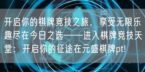 来到元盛棋牌PT,开启您的棋牌竞技之旅!这里有无尽的乐趣和挑战等待着您。加入我们的竞技天堂,与其他玩家一较高下,展示自己的实力!今天就来元盛棋牌PT,尽享无限乐趣吧!